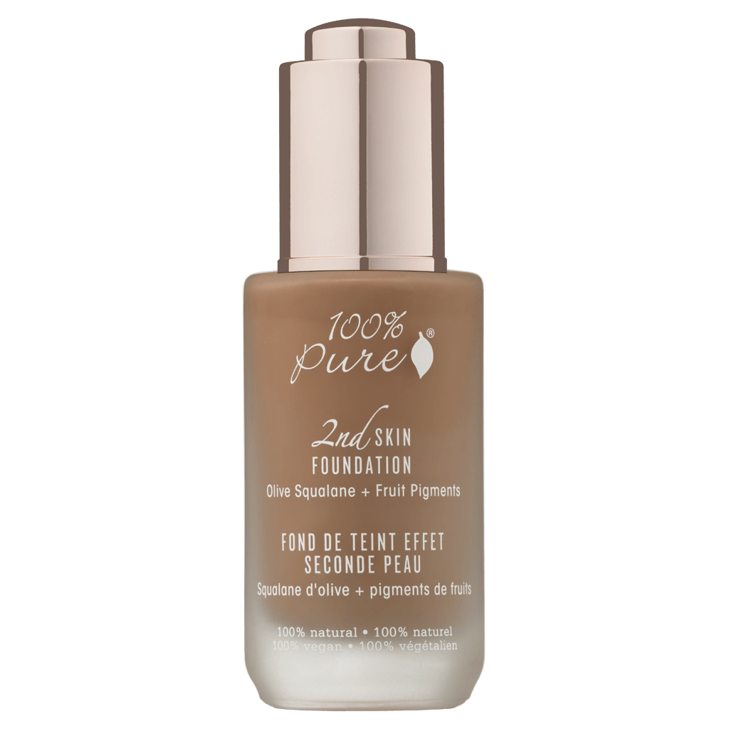 100% Pure 2nd Skin Foundation: Cocoa Olive Squalane + Fruit Pigments – 35 ml er et serum med Olive Squalane, anti aldrende oksidanter, rene frukt pigmenter og vitaminer. Den gir en veldig naturlig finish, og både ser og føles fantastisk på huden. Den gir synlig et mer ungdommelig utseende, på en måte du aldri har opplevd før. Denne 2nd Skin Foundation er pefeksjonert formula, som både er sunt for huden og føles og ser lukseriøs ut.