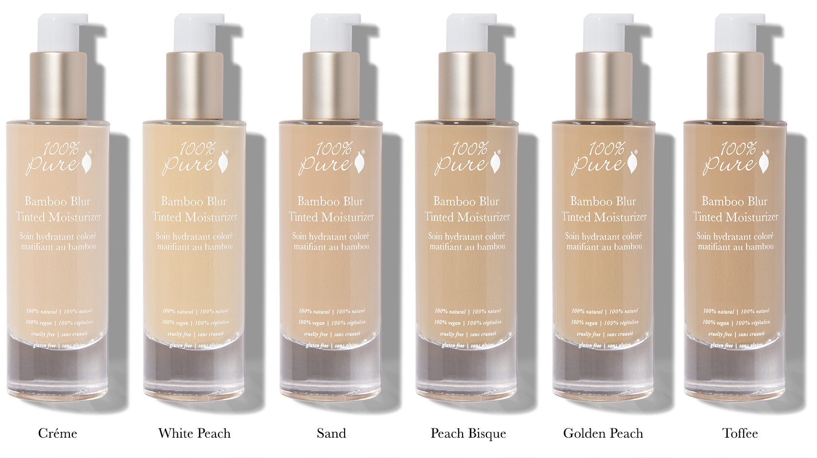 100% Pure Bamboo Blur Tinted Moisturizer: Sand 50 ml – er en farget fuktighetskrem med en lys og gylden fargetone, glatter ut finelinjer og porer. Gir en slikemyk finish.