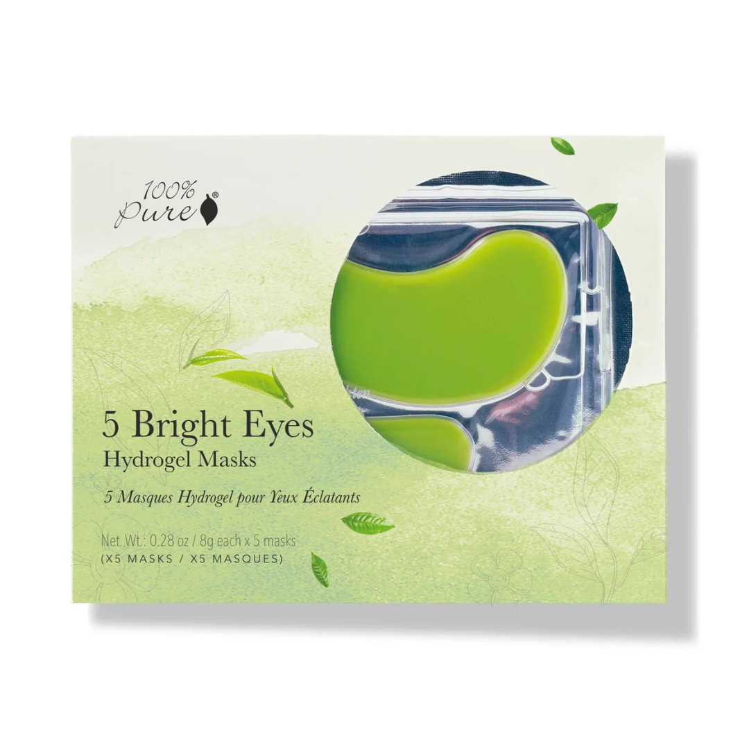 100% Pure Bright Eyes Mask er en oppkvikkende og utglattende øyemaske med 5 masker i en pakke. Den fjerner poser under øynene og glatter synlig ut rynker og fine linjer rundt øynene. Øyemasken er ekstremt fuktighetsgivende, og gir en tørr og tørst hud masse vann rett i de uttørkede hudcellene. Føles herlig kjølig når du har den på og tiden etterpå.