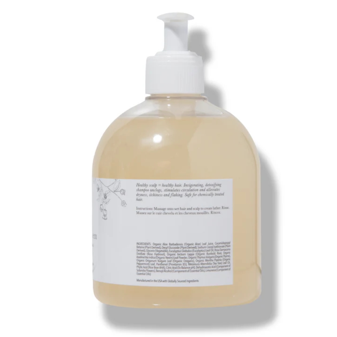 Økologisk shampoo som behandler hodebunnen gjennom å rense porene, stimulerer blodsirkulasjonen og lindrer tørrhet, kløe og flassing.