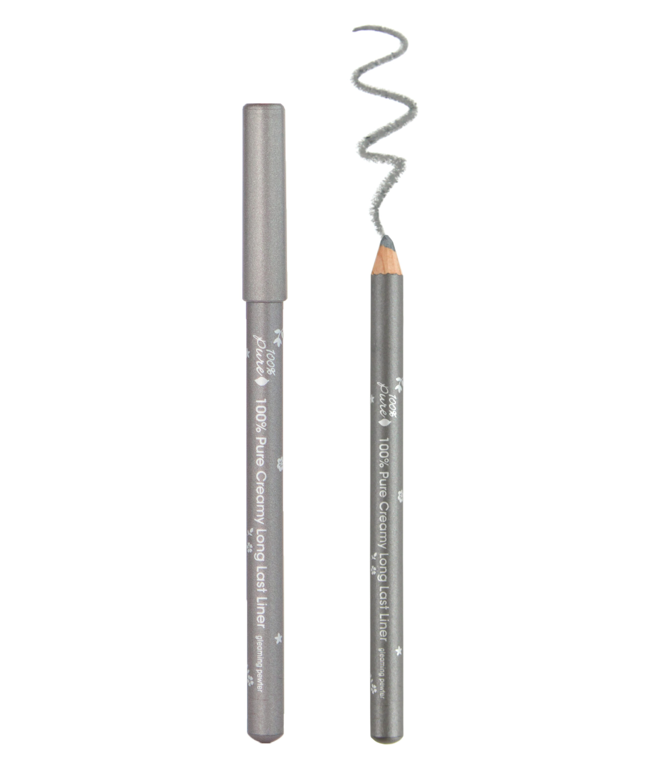 100% Pure Creamy Long Last Pencil Liner – Gleaming Pewter (grå/sølvgrå) er lett å påføre, den sitter godt og varer lenge.