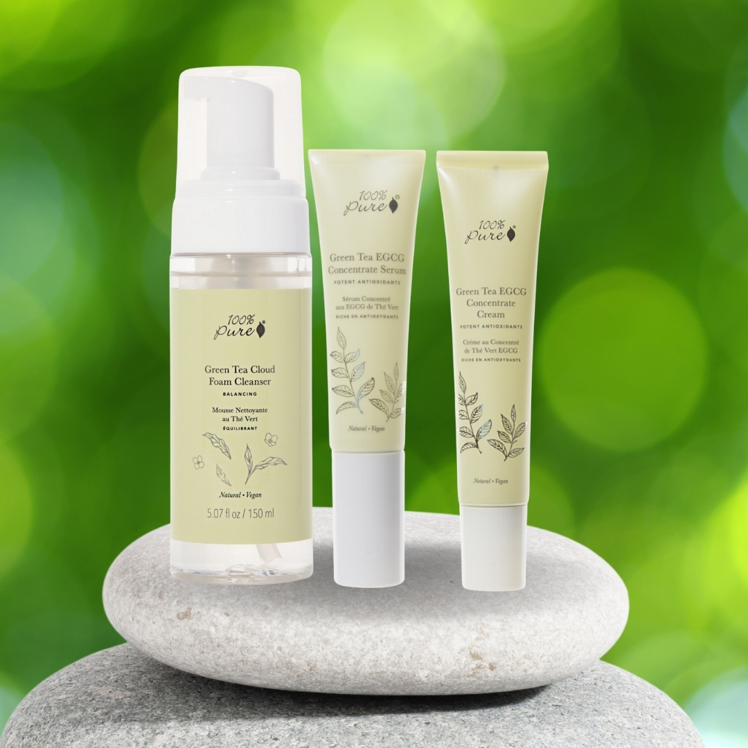 - Grønn te EGCG – En av naturens mest potente antioksidanter, beskytter hudcellene og hjelper til med å opprettholde spenst og elastisitet.