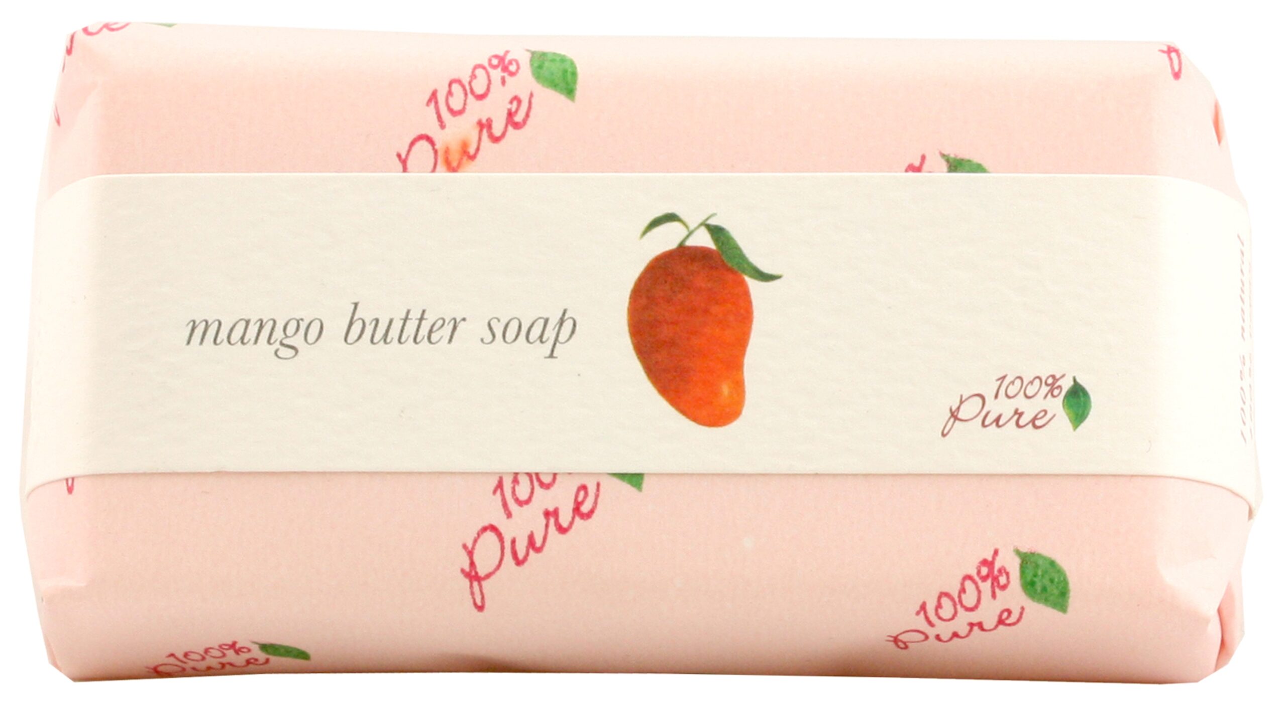 100% Pure Mango Butter Soap er en vegetabilsk såpe beriket med sheasmør og kokosolje, kjent for å gi fuktighet til huden, beskytte den og gjøre den mykere.