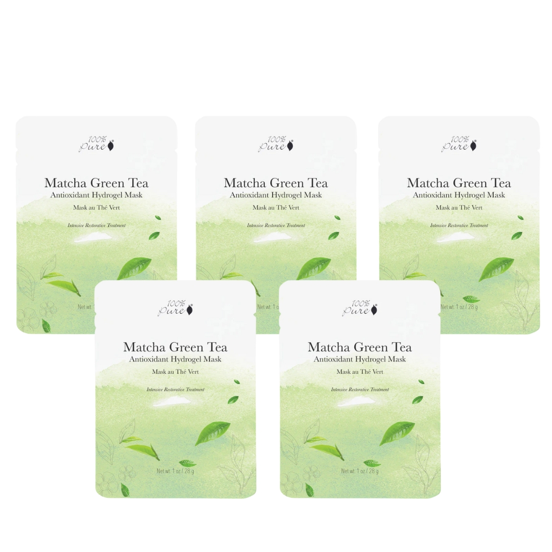 100% Pure Matcha Green Tea Antioxidant Hydrogel Mask – er en intens fuktighetsgivende og forfriskende ansiktsmaske. Hylaronsyre gir rett og slett vann til tørste hudceller, og grønn te gir et kraftig anti-aldrende og anti-innflammatorisk virkning.