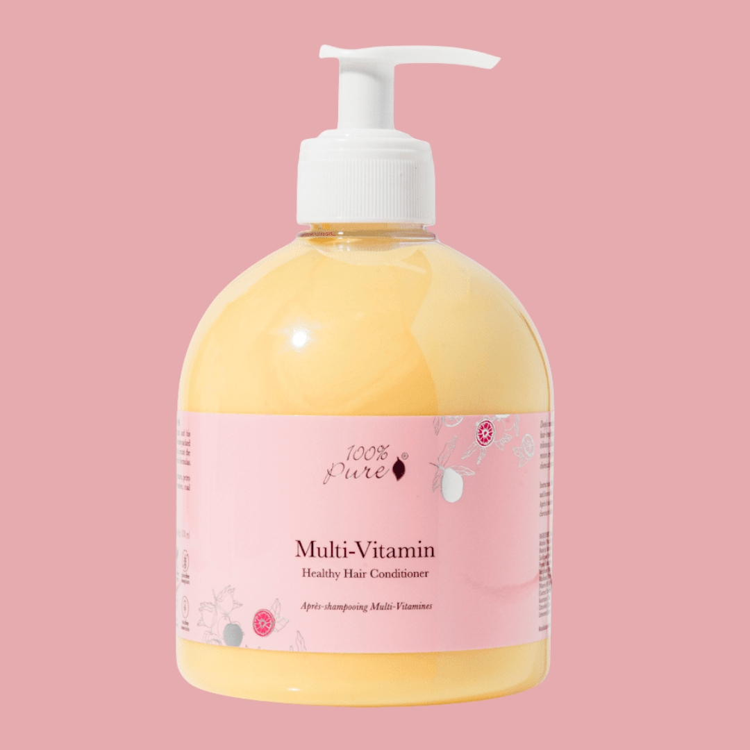 100% Pure Multi-Vitamin Healthy Hair Conditioner – 474ml er en dypt næringsgivende som gir et mykere, sunnere og mer glansfult hår. Den gir mye fuktighet til håret og gjenoppretter hårhelsen og gir liv til slitt, tørt og skadet hår.