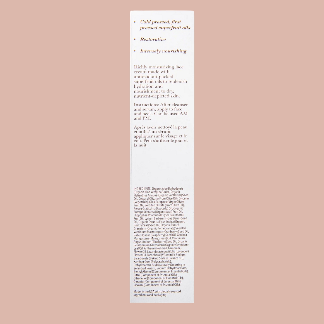 Rik ansiktskrem med superfrukt oljer, som inneholder sterke antioksidanter. Den gir dyp næring og beskyttelse til tørr hud og miljøskadet hud.