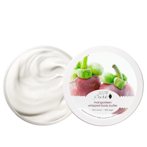 100% Pure Mangosteen Whipped Body Butter er et super tykt, rikt og kremet body butter som smelter på huden din. Mykner huden og gir dyp fuktighet. Kan brukes av alle, og spesielt fordelaktig for tørr hud.