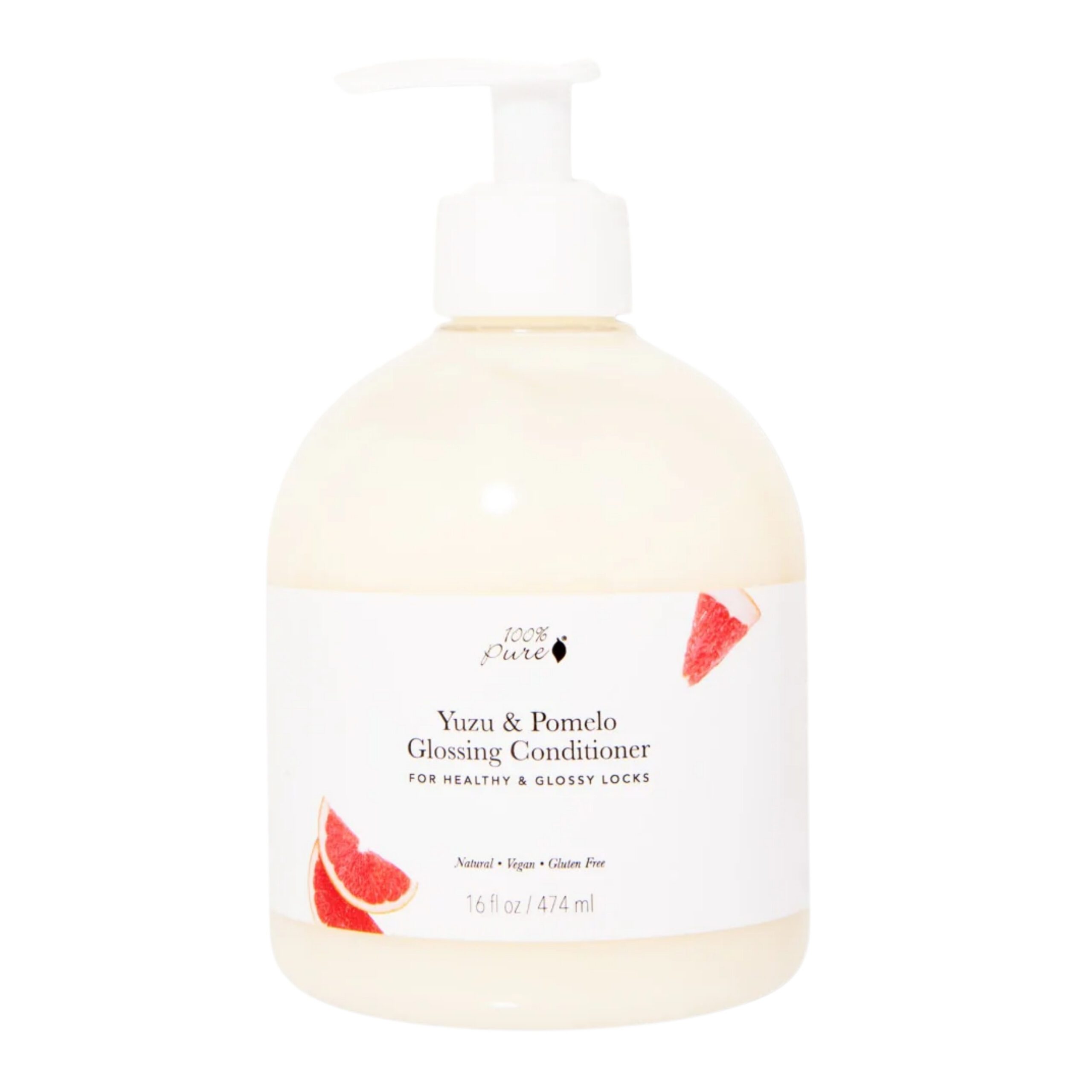 100% Pure Yuzu & Pomelo Glossing Conditioner –474 ml er en revitaliserende, naturlig balsam som gjenoppretter glans og vitalitet i matt og livløst hår – uten å strippe fukt eller farge.