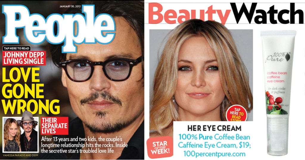 - MAGASINET “PEOPLE” 2012, KATE HUDSON GIR SINE SKJØNNHETSTIPS OG ANBEFALER 100% PURE COFFEE BEAN CAFFEINE EYE CREAM