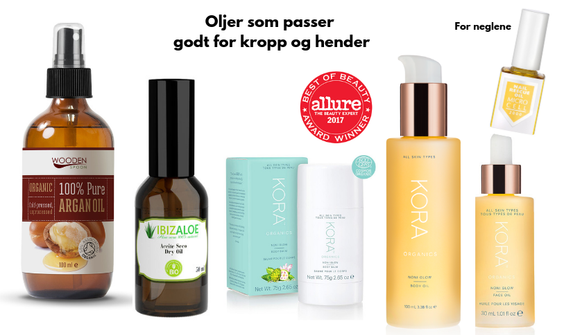En olje trenger lenger ned i huden og etter en god skrubb, sluses den rett inn og gjør hendene utrolige myke. Noen oljer passer bedre til hender enn andre oljer, og disse kan ofte bli fete i ansiktet, men ikke på hendene. Noen oljer er allroundere og kan brukes både på ansiktet, kroppen og i håret. Dersom du har tørr negler, som brekker lett, eller sprukne neglebånd, bruk en god negleolje.
