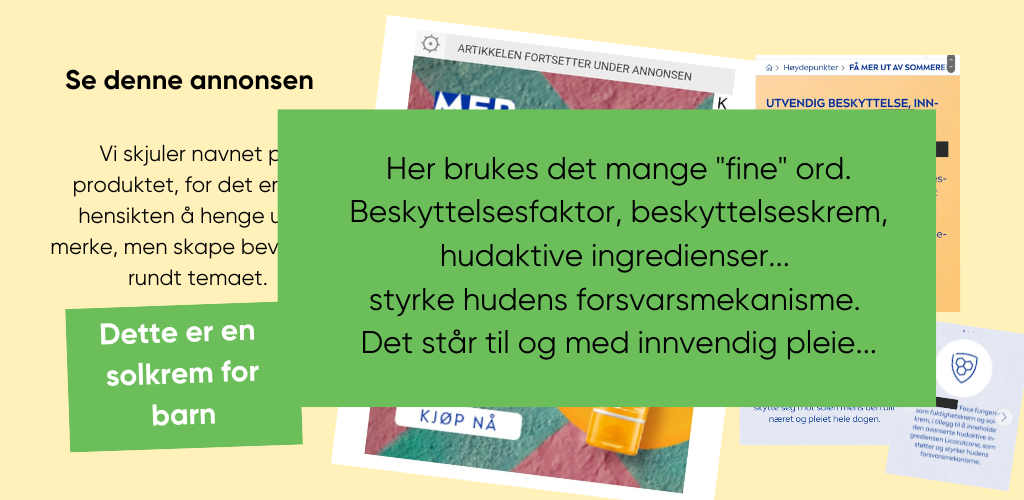 De bruker ord som bærekraft og nedbrytbar”, når de har ingredienser, som ikke er det. Og så bruker de ord som er bra for oss, “hudbeskyttende”, “hudaktive ingredienser” og “styrker hudens forsvarsmekanismer” og “sunn også for innsiden.”