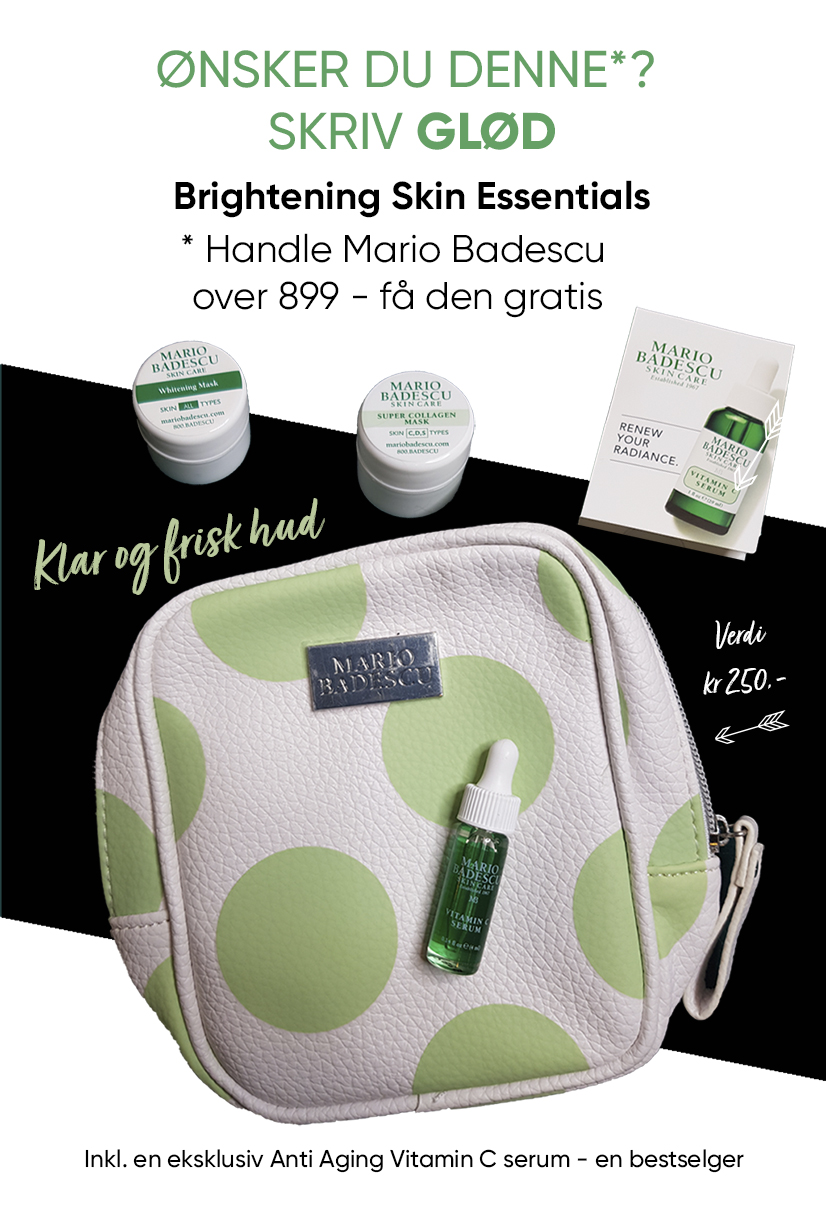 Denne premien er 3 bestselgere, som kommer i en morsom polkadott toalettmappe, med to masker som renser og strammer opp huden. Du får mindre porer og strammere hud, og ikke minst glød med en populære Vitamin C serum. Det virker fra første påføring.