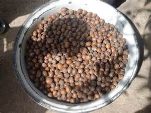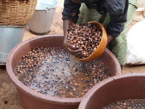 Når nøttene er varme, males de opp til en finere paste, og gradvis tilsatt vann, for å skille ut oljen. Når oljene flyter til overflaten blir smøret til en slags ostemasse, som blir tatt ut og overflødig vann blir presset ut av massen.  Deretter blir smør/ostemassen smeltet i store åpne panner, på lav varme. En slik langkoking fjerner resten av vannet i smøret.