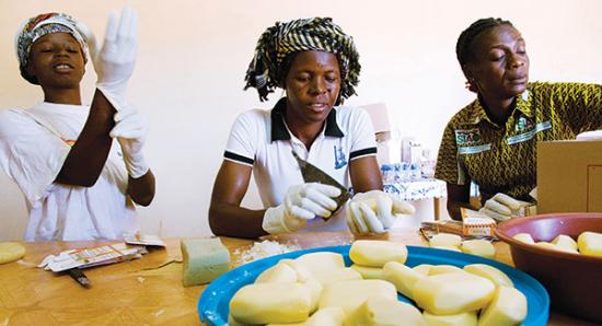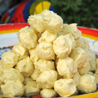Sheasmøret, som på dette tidspunktet, har en offwhite eller gylden gul på farge, blir lagt i former og lagt kjølig for at det skal blir hardt. Etter dette formes det som små baller.