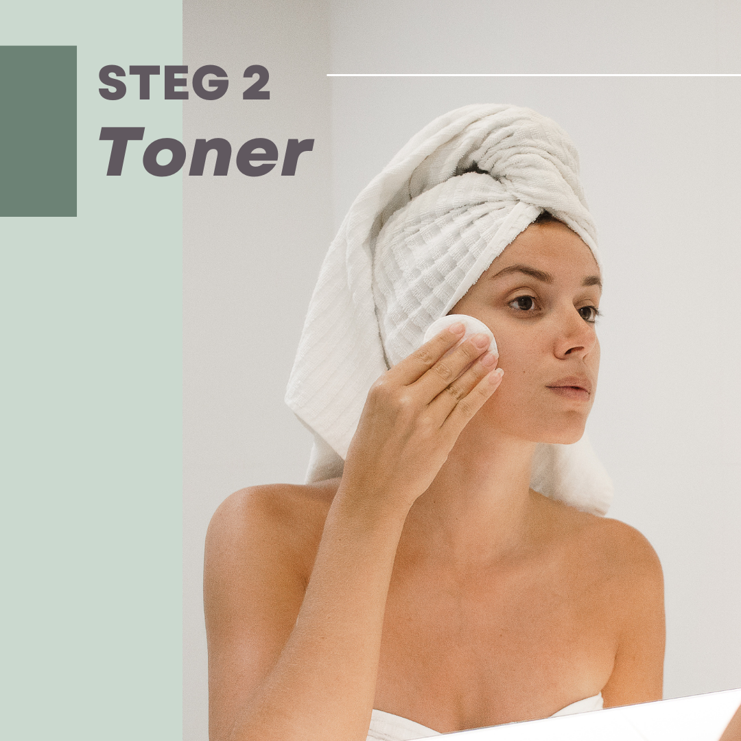 En toner er et tyntflytende væske, som du vasker eller “drar” over huden, med en bomullsdott. Hvis du gjør det etter du har renset huden, kan du ofte se at bomullsdotten blir skitten/brun. Det er fordi den fjerner restene etter rensen og tar med seg usynlige rester av forurensingen, makeup, solkrem osv. En toner er i natur tynnere enn en rens og trekker derfor lenger ned i porene og renser enda bedre. En toner kan ha mange funksjoner og tilpasses hudtypen og hudbehovet.
