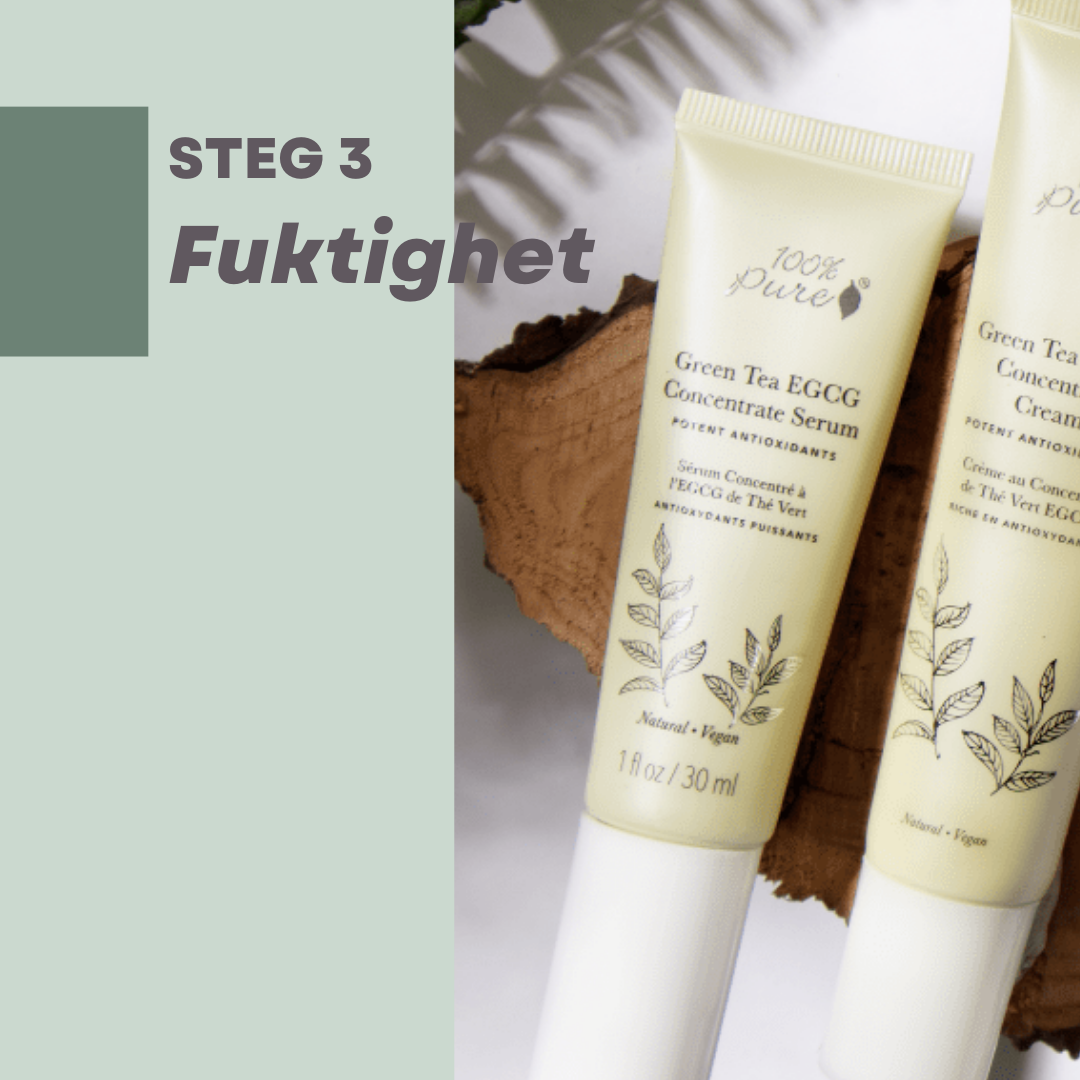 Å tilføre fuktighet er viktig. Bruk fuktighetskremer og serum for din hudtype og dine eventuelle plager og hudbehov.Noen trenger lett fuktighet, andre mer pleiende og mer oljete fuktighetskremer.