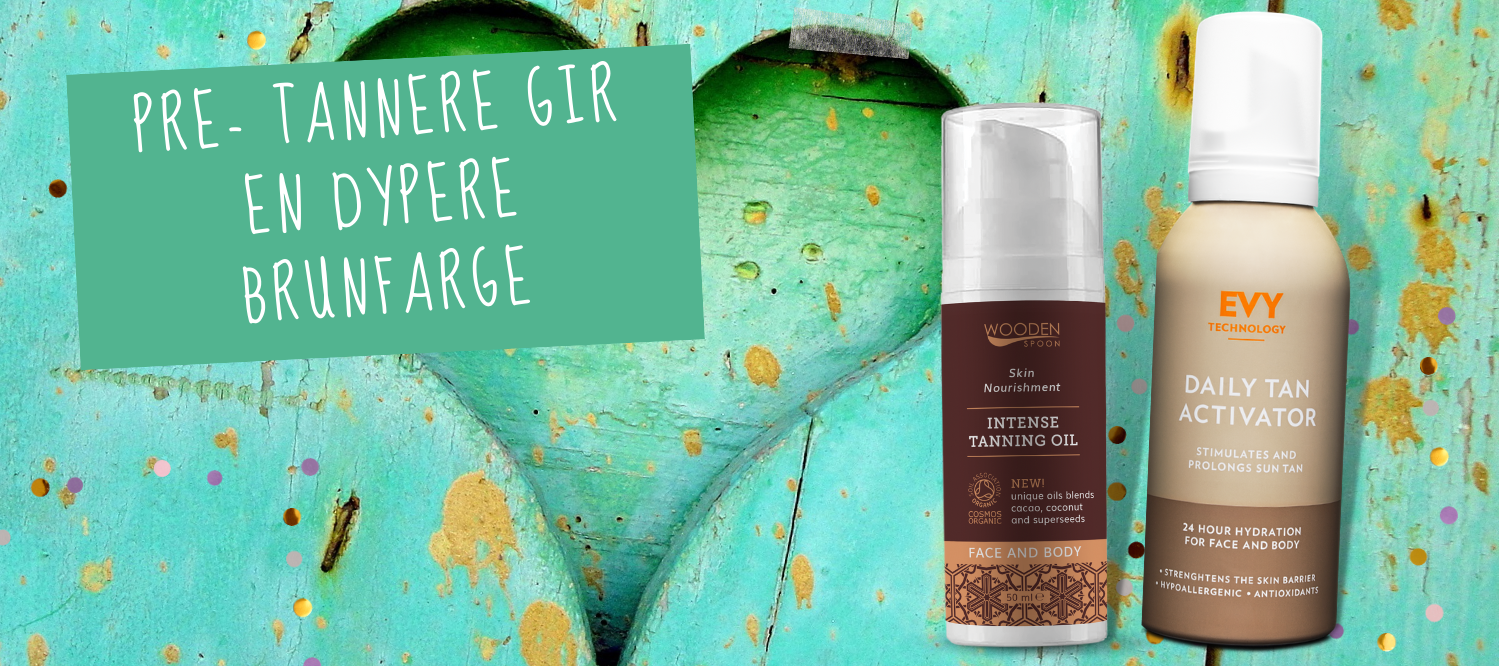 Et godt tips til deg om du ønsker en dypere og raskere brunfarge på sommeren, er å bruke “pre- tannere”. Det er produkter som stimulerer melaninet i huden (melaninet er det som aktiveres når du blir utsatt for solstråler og som skal beskytte oss, men som da blir mørkere, og dermed fører til at vi blir brunere i huden).  Wooden Spoon Tanning Oil er en olje og EVY Tan Activator er et skum, som er superlett å smøre på huden, og to er veldig gode, begge to. De pleier huden skikkelig med masse fuktighet og pleie også. De er virkelig favoritter begge to.