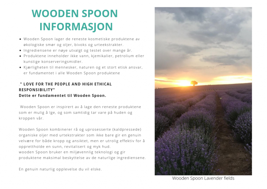 Kunnskap og erfaring i hud- og hårpleie er sentralt i utviklingen, og som gjør produktene så gode, men de har også et så stort hjerte for å ta vare på jorda og miljøet, og ikke minst for det naturlige og effekten, som disse produktene har. Deres livsfilosofi bare skinte gjennom i menneskene, som står bak Wooden Spoon. Det betyr også noe for oss i Karma.no. Wooden Spoon sier det selv: