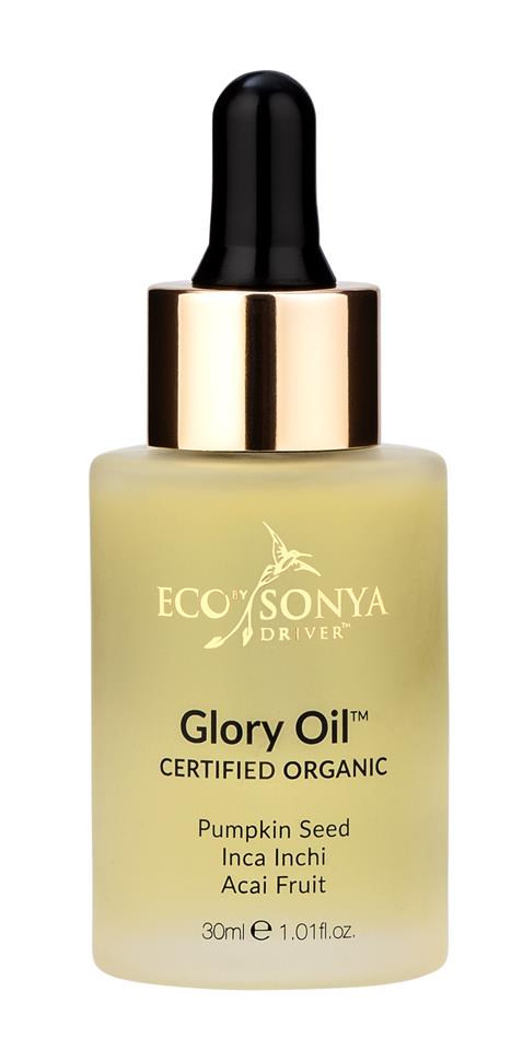 Eco by Sonya Glory Oil – 30 ml er en økologisk og vegansk ansiktsolje for alle hudtyper. Nærer, lindrer, jevner og fornyer huden. Ideelt for arr, hud med aldringstegn, fine linjer og rynker og tørr og irritert hud. Har gitt fantastiske resultater på arr! Takket være den økologisk sertifiserte superblandingen av kraftfull supermat som inca inchi, acai og gresskarfrø vil denne mirakeloljen redusere arr og fine linjer, gjenopprette fuktighetsbalansen og gjør huden sunn og strålende.