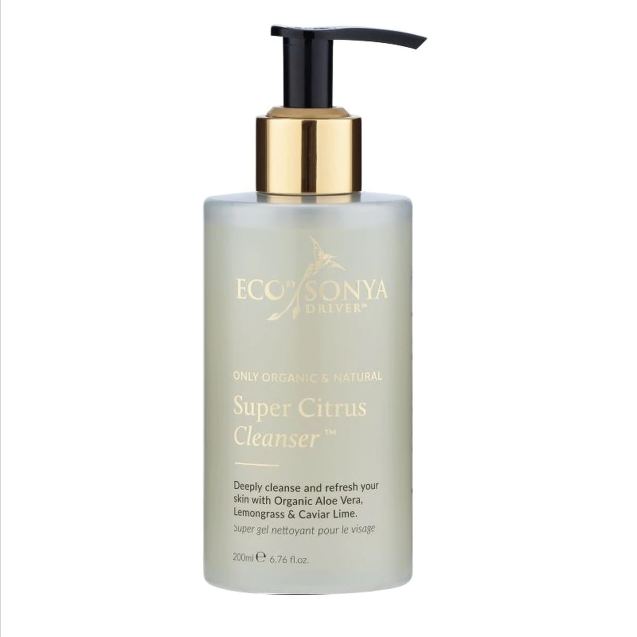 Eco by Sonya Super Citrus Cleanser – 200 ml er en økologisk og vegansk ansiktsrens for alle hudtyper. Mild formel som renser, eksfolierer og balanserer huden uten å tørke den ut. Består kun av økologiske og naturlige ingredienser. En enestående superblanding av økologisk sertifisert aloe vera, sitrongress og lime caviar som renser huden i dybden, regenererer og eksfolierer huden mildt og etterlater den myk med en jevn og klar hudtone.