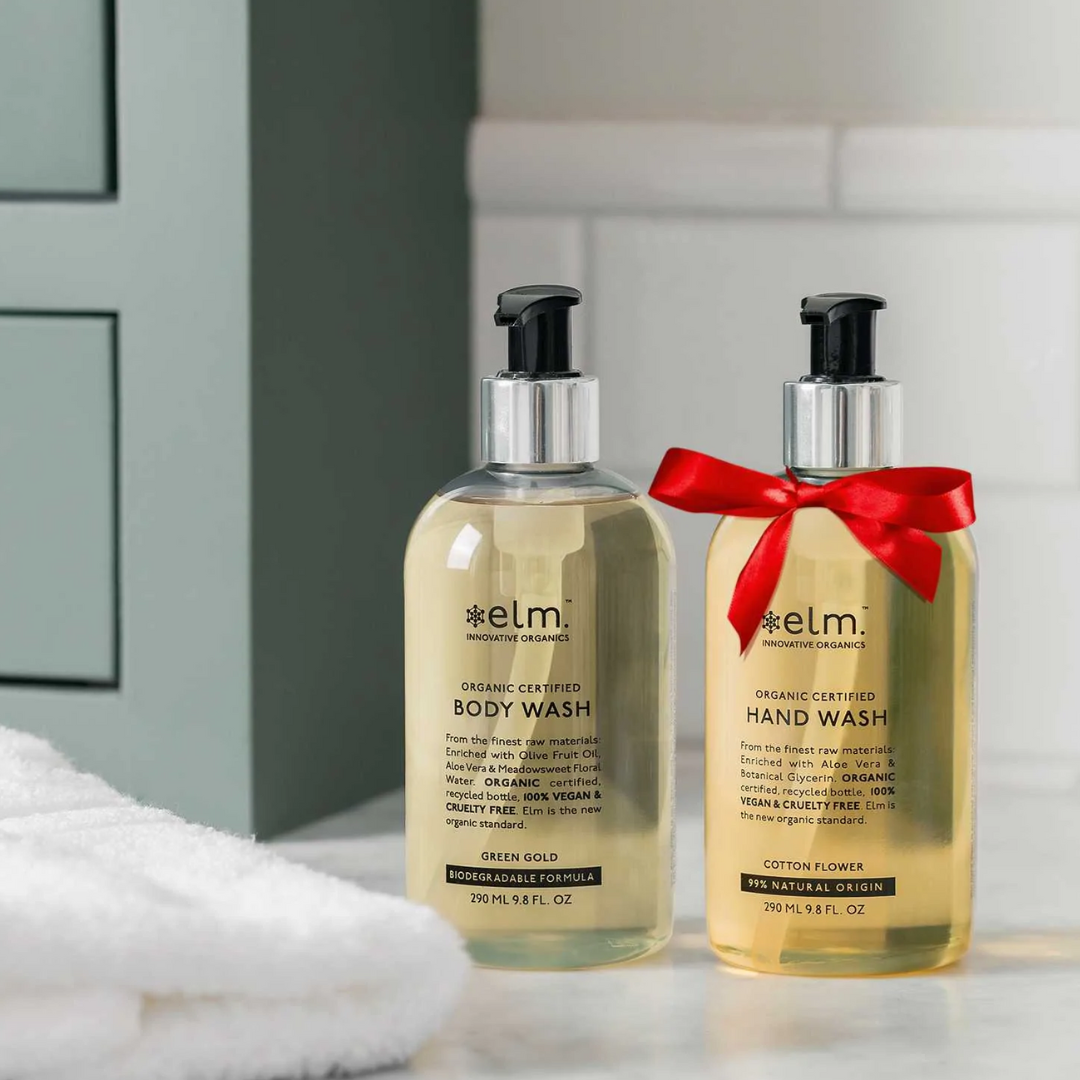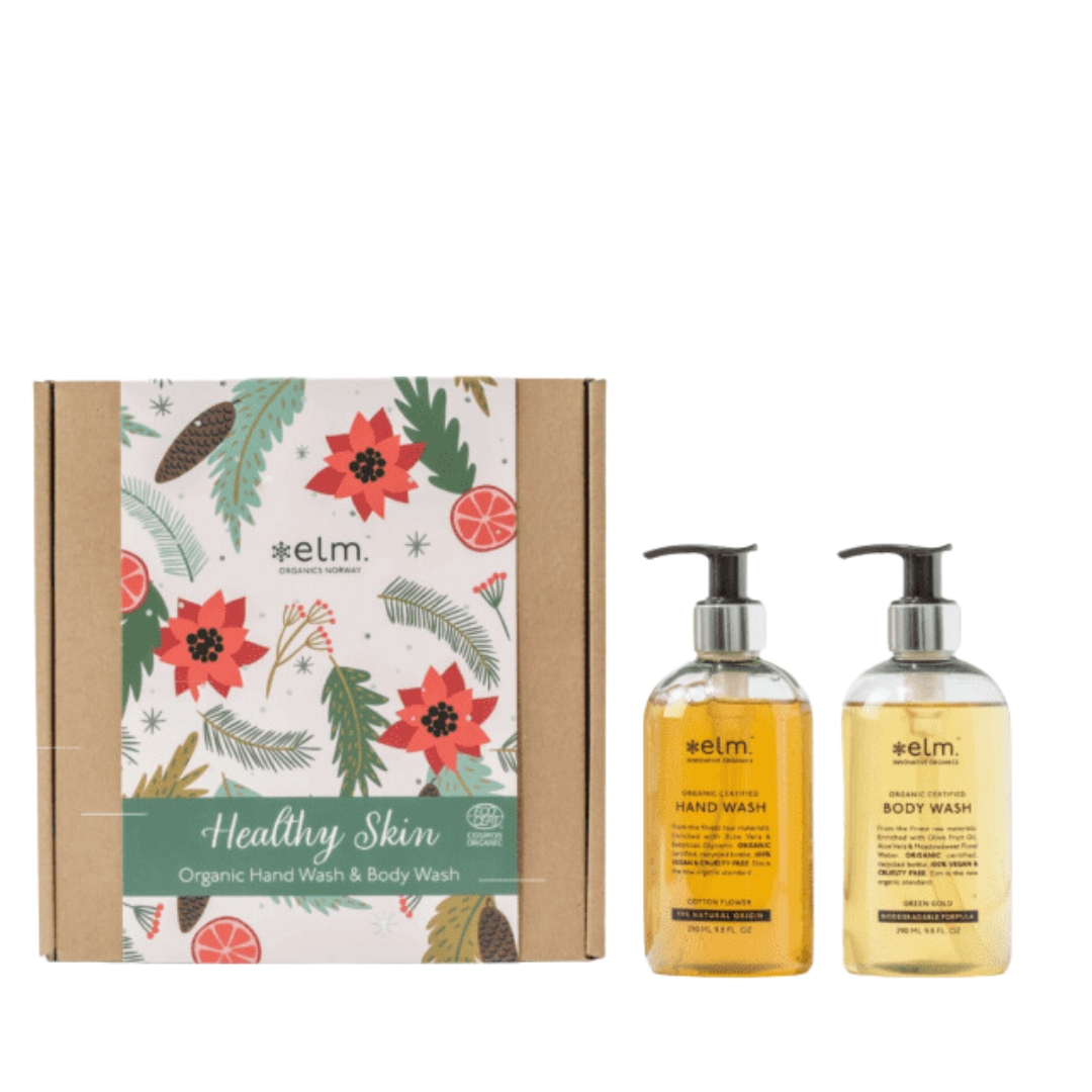Elm Organics Healthy Skin Gavesett m/ økologisk håndsåpe og dusjsåpe – 2 x 290 ml er et nydelig gavesett med de to populære produktene økologisk håndsåpe og dusjsåpe fra Elm Organics.