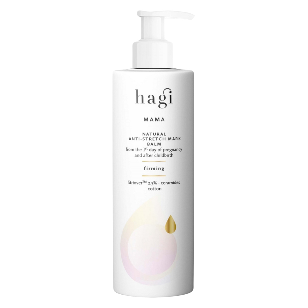 Hagi Mama Natural Anti-Stretch Mark Balm – er en 100 % naturlig og pleiende balm som hjelper med å forebygge og redusere synligheten av både røde og hvite strekkmerker. Den er spesielt utviklet for gravide og nybakte mødre, og anbefales fra første dag i svangerskapet og minst to måneder etter fødsel.