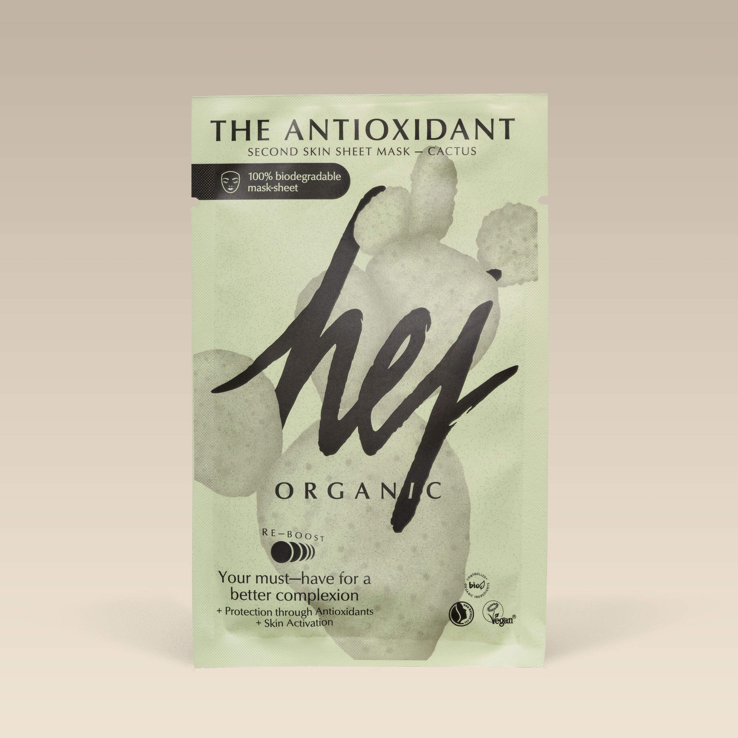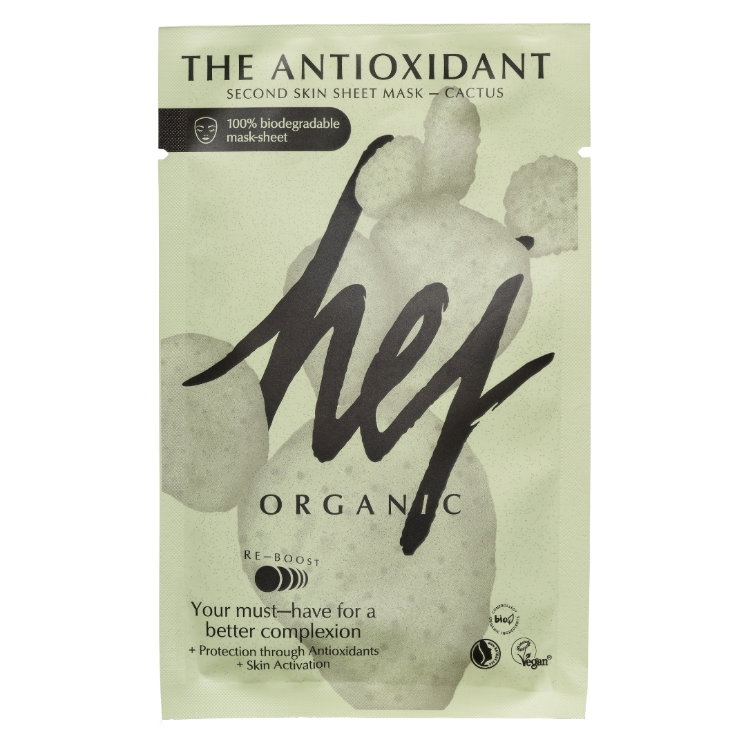 Hej Organic Cactus The Antioxidant Sheet Mask – 18 gr er en anti aldrende ansiktsmaske som lysner huden, gjør den fastere og glatter ut huden din. Den tilfører huden mye fuktighet og beskytter den mot frie radikaler og aldring.