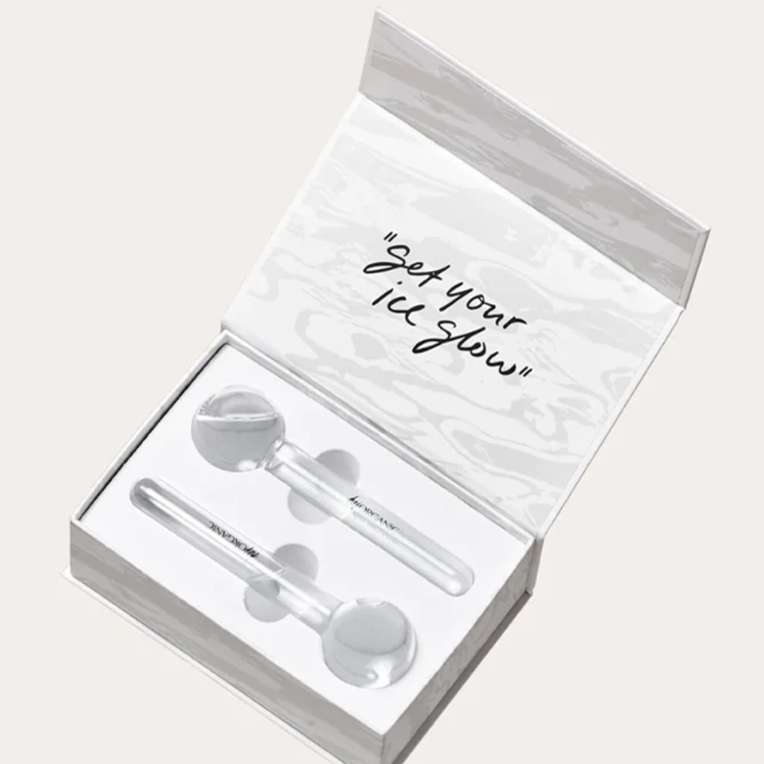 Ice Globes jevner ut huden og den kjølende effekten reduserer hevelse. Globusene leveres i pene esker med magnetisk lukking som kan brukes til oppbevaring . Ideell som en avslappende, forfriskende gave til deg selv og huden din eller noen du er glad i. Du kan også bruke Ice Globes i kombinasjon med et serum eller maske for en komplett hudpleierutine.