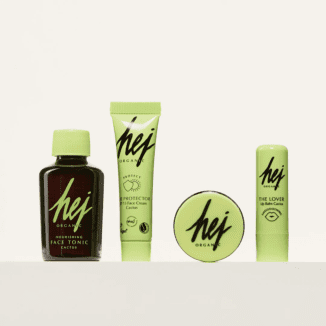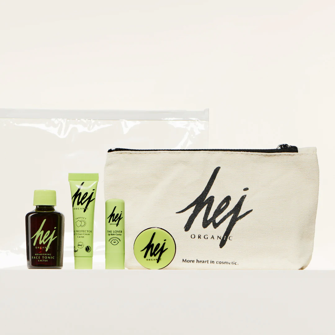Hej Organic Travel Kit — Face Tonic, Lip Balm, Ghassoul Mask and Face Cream + Toalettmappe