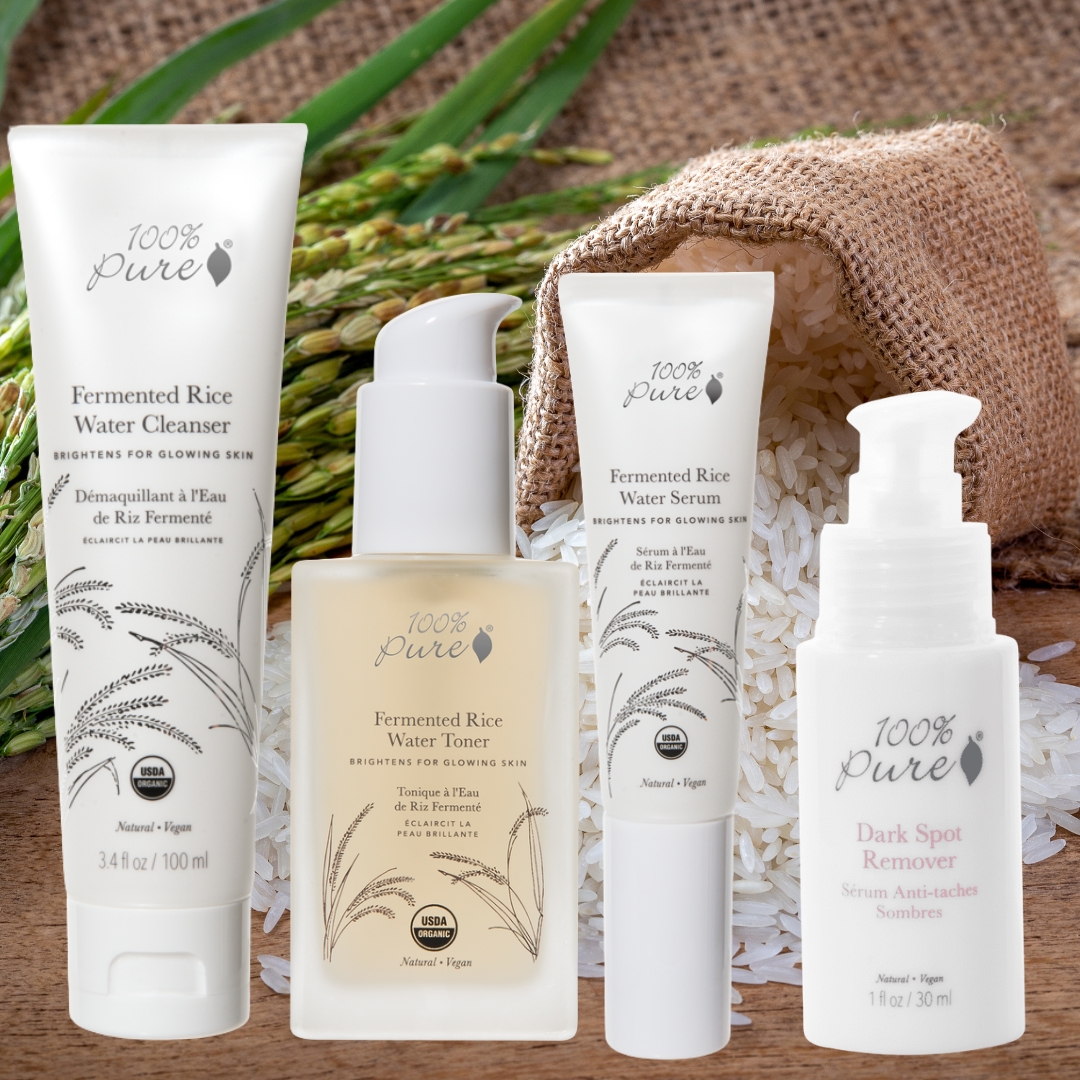 Hudpleiepakke 100% Pure: Fermented rice trio + dark spot: Glød & Jevnere hudtone