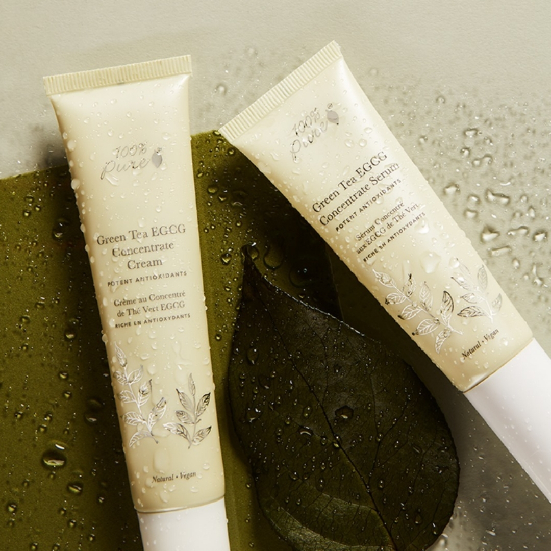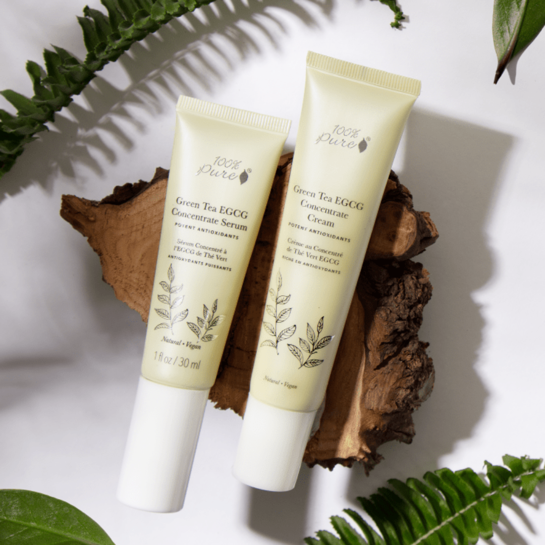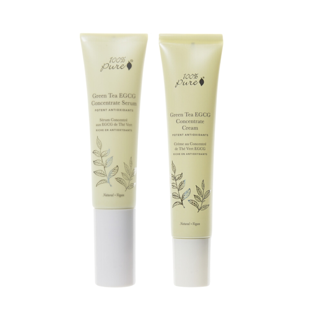 Hudpleiepakke 100% Pure: Green Tea EGCG Serum + Krem Duo