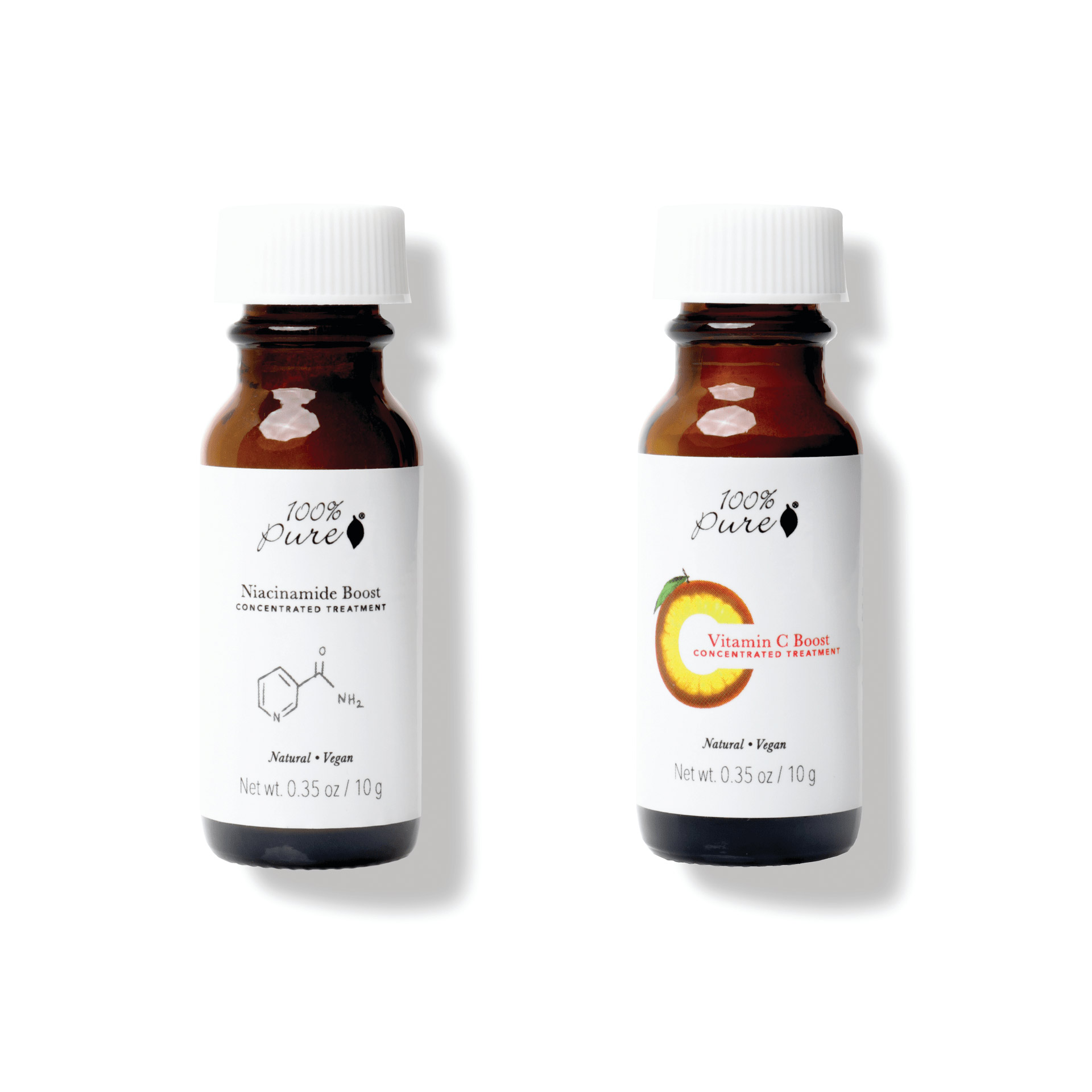 - 100% Pure Vitamin C Boost – 10 ml inneholder en potent dose med stabilisert vitamin C som drastisk øker elastisitet og glød i huden.