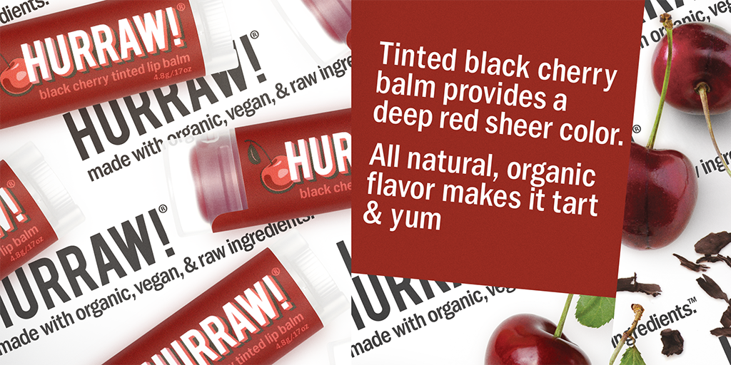 HURRAW! Black Cherry Lip Balm – 4,8 gr er en naturlig, vegansk og økologisk leppeomade med rå fair trade ingredienser. Den pleier, fukter og mykgjør leppene akkurat som en god leppeomade skal gjøre. Klisser ikke og føles behagelig på leppene. Leppeomadene fra HURRAW! kommer i mange ulike dufter.