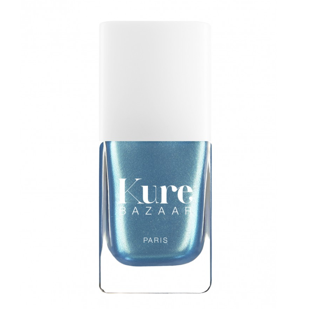 Kure Bazaar Nail Polish Milk – 10 ml er en fulldekkende økplogisk og vegansk neglelakk med en blå, metallisk farge.