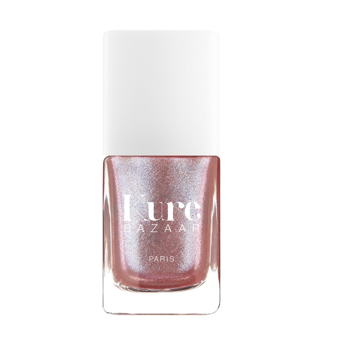 Økologisk, vegansk 12-FREE neglelakk i heldekkende lakk i en rosé, holografisk finish.