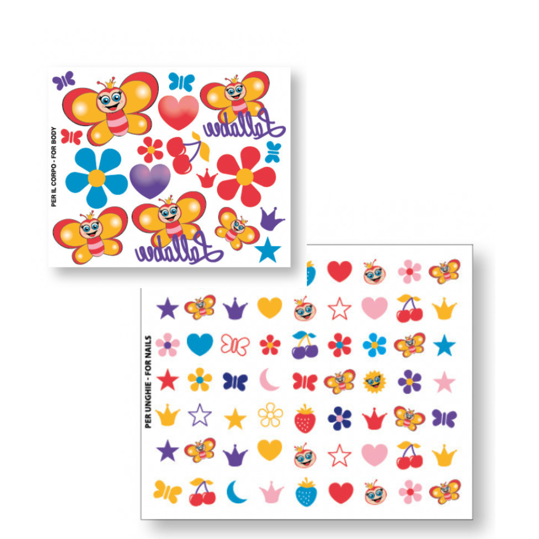 Produktnummer: 2102-301Stickers for barn er trygge stickers for barn. Moroa fortsetter med med disse klistremerkene som kan brukes som kroppstatoveringer og til å pynte neglene.