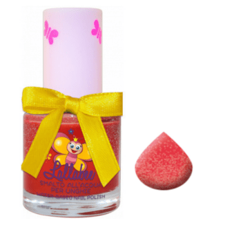 Lallabee trygg neglelakk for barn – Vulcanello- 9 ml er en vannbasert, trygg og giftfri neglelakk for barn. Denne er i en fresh varmrosa farge med glitter. Den har en del fargepigmenter og gir godt med farge, men er ikke heldekkende. (er freshere enn på bildet, så vi må få laget nye bilder for å få frem glansen bedre…)