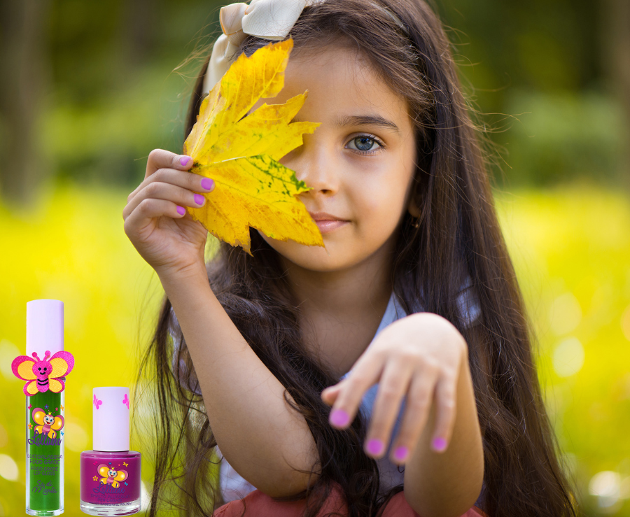 - Alle sterke kjemikalier som normalt finnes i neglelakker er helt borte, og bør alltid unngås å brukes av barn i alle aldre (fra 3-11 år). Med kun naturlige fargepigmenter og lukt fra frukt og grønnsaker, er de helt trygge for alle barn (og voksne).