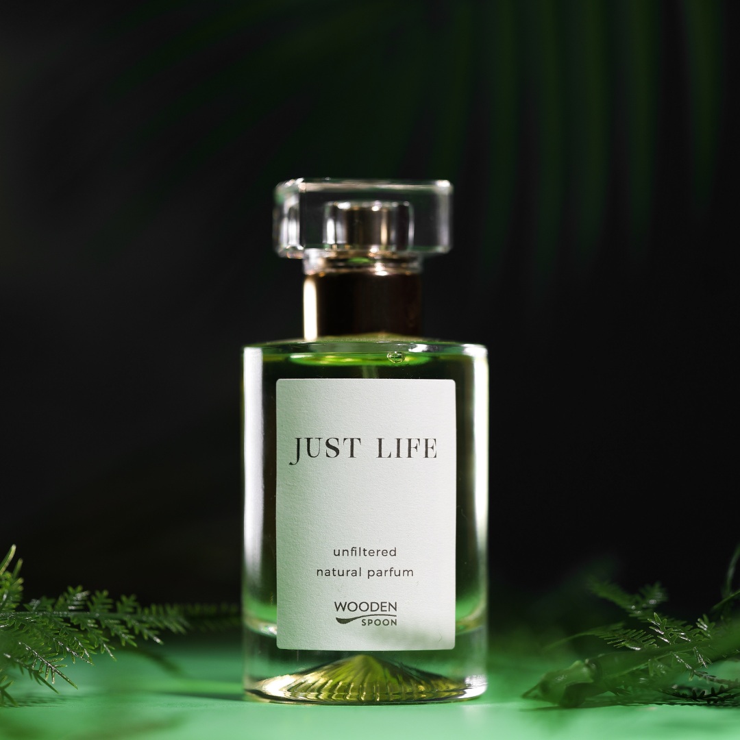 Wooden Spoon Natural Parfum – Just Life – 50 ml er en ekte og naturlig parfyme, utviklet av en italiensk alkymist (parfymekunstner) i samarbeid med Silviya Pavlova i Wooden Spoon. Han elsker hele filosofien og arbeidet som Wooden Spoon gjør for å lage rene, trygge produkter og for en renere skjønnhetsindustri og kontaktet Silviya og sa han ønsket å lage parfymer for henne. De har i lang tid jobbet med å lage de perfekte, naturlige parfymene, og dette er én av de 3 første de har lansert.