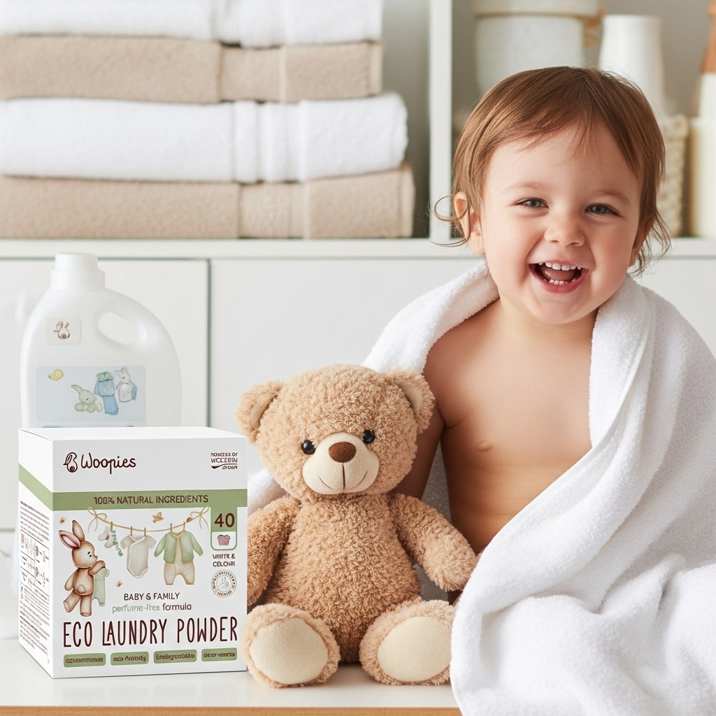 Woppies ECO Laundry Powder – 1,5 kg er et miljøvennlig og skånsomt vaskepulver til klær. Med en naturinspirert formel – laget utelukkende av plante- og mineralbaserte ingredienser, gir dette vask som både er effektiv og usedvanlig skånsom. Den passer selv for den mest sensitive huden – inkludert babyer og personer som er utsatt for allergier. Vaskepulveret inneholder ingenting unødvendig – kun nøye utvalgte, naturlige ingredienser som rengjør grundig uten å irritere huden eller skade tekstilene. Natron mykgjør vannet og nøytraliserer lukt, mens tradisjonell, mild Marseille-såpe tar seg av flekker på den mest naturlige måten.